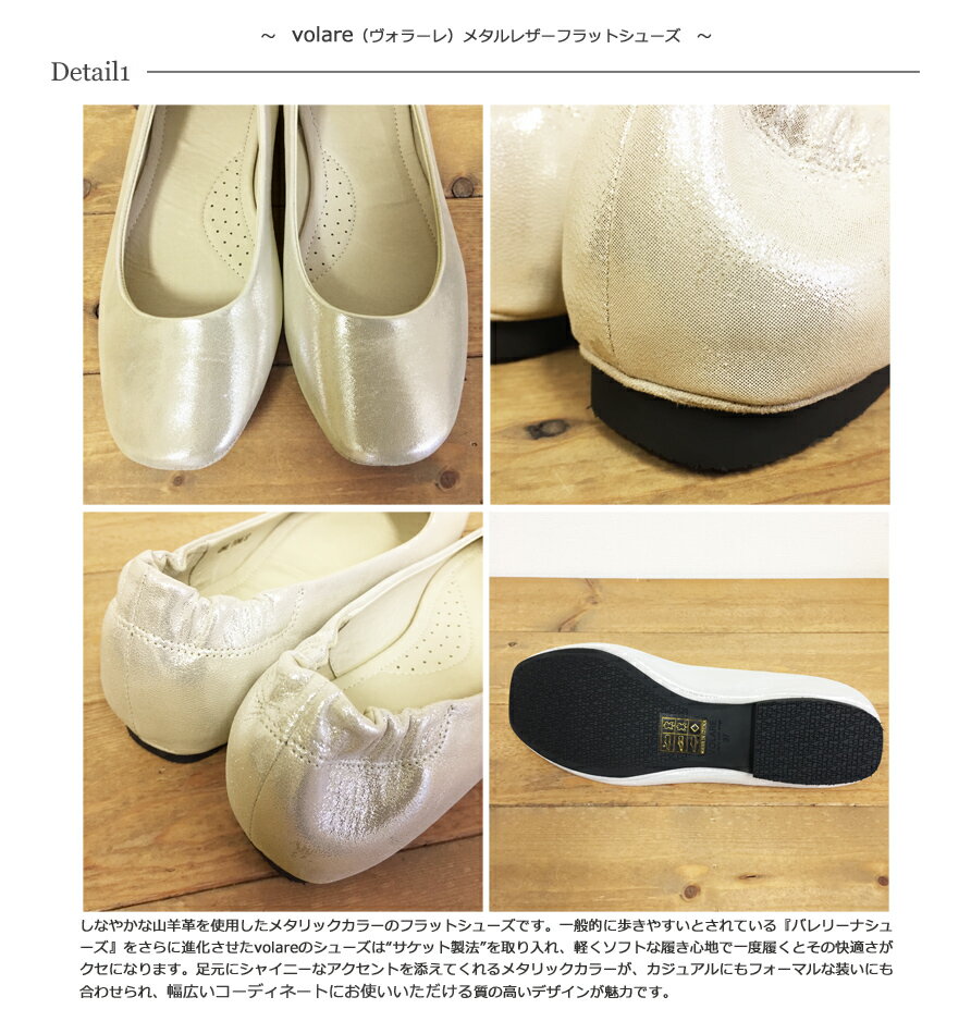 そんなvolare(ヴォラーレ)より メタルレザーフラットシューズのご紹介です。