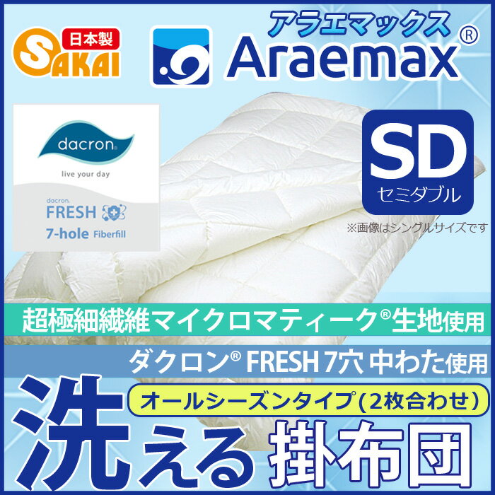 清潔・安心のウォッシャブル布団 ダニ・ホコリ対策万全の 『マイクロマティーク』生地使用 ダクロン(R) FRESH 7穴 中わた・洗えるオールシーズン掛布団 セミダブルロング(2枚合わせ) ■サイズ 170×210cm ■生地 マイクロマティーク (ポリエステル75%、綿25%) ■中綿 ポリエステル100% (ダクロン(R) FRESH 7穴 中わた使用) ■中綿量 肌掛け・・・0.75kg 合掛け・・・1.2kg ■総重量 約4.16kg ・・・・・・・・・・・・・・・・・・・・・・・・・・・・・・・・・・・・・・・・ ■特徴 ・丸洗いOK 生地・・・マイクロマティーク 《早く乾く》・《よく水を吸う》・《縮みにくい》生地で、ダニ・ホコリ等の侵入を防ぐ、『マイクロマティーク』を使用しています。