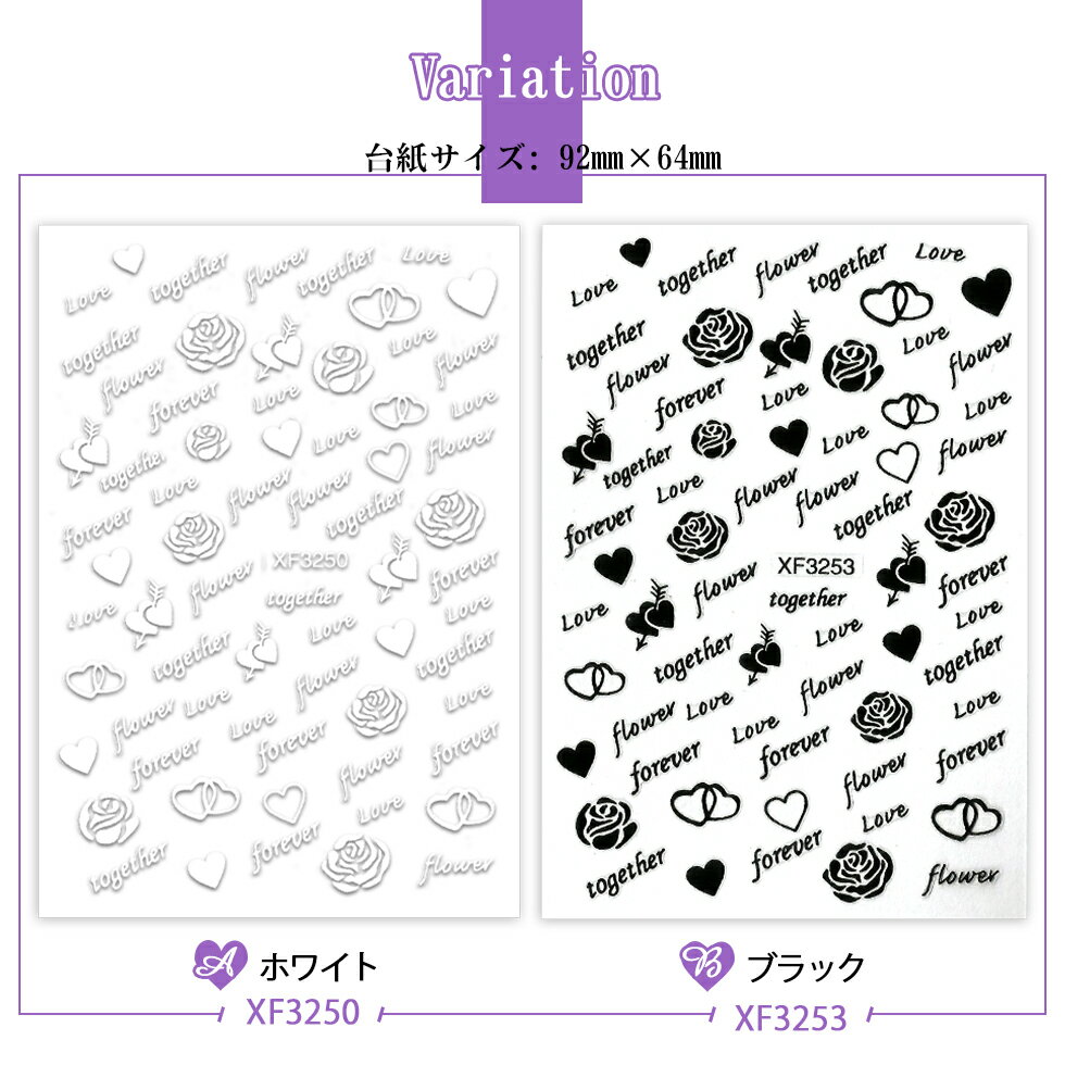 【ネイルシール】LOVEローズ XF3250/XF3253【メール便対応】ネイルシール ネイルアート ジェルネイル セルフネイル タカラネイル ネイルステッカー 夏 春 ポイントシール 大人可愛いネイル 白黒シール 薔薇シール ネイルアートシール 花シール ロゴシール